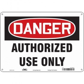 Safety Sign Sign Subject Matter Authorized Personnel and Restricted Access Height 10 In. Width 14 In. Sign Material Aluminum Sign Mounting Style With Mounting Holes Header Danger Legend Authorized Use Only Printed Language English Sign Shape Rectangle