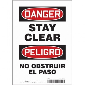 Safety Sign Sign Subject Matter Keep Clear Height 10 In. Width 7 In. Sign Material Vinyl Sign Mounting Style Adhesive Surface Header Danger Legend STAY CLEAR/NO OBSTRUIR EL PASO Printed Language English Spanish Sign Shape Rectangle