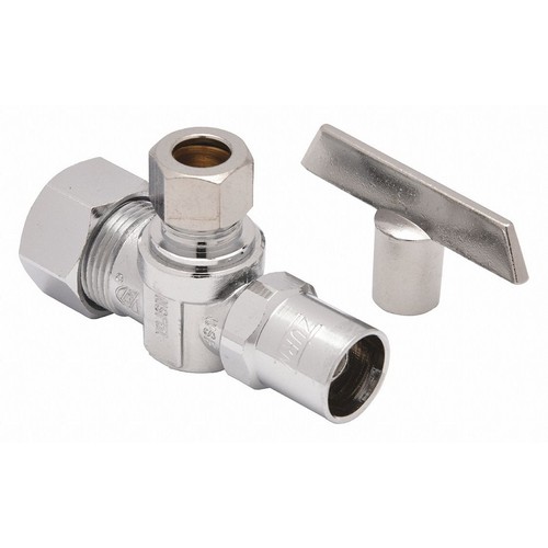 Angle Supply Stop Body Style - Valves Angle Finish Chrome Inlet Size 1/2 In. Inlet Type Compression Outlet Size 1/2 In. Outlet Type Compression Max Pressure 200 psi Temp Range 33 Degrees to 100 Degrees F Body Material Brass Handle Material Brass Stem Material Brass Includes Loose Key Standards IAPMO NSF61