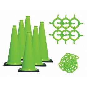Traffic Cone Kit Application Outdoor or Indoor 28 In. Green UV Inhibited Polyethylene Gloss Finish Includes (6) Traffic Cones 14 in x 14 in Base (6) Cone Chain Connectors 50 ft Plastic Chain