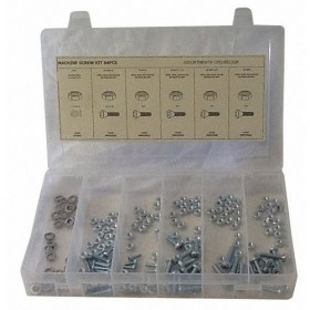 Machine Screw Nut and Washer Assortment Type Standard Head Type Oval Steel Finish Plain Size #10-24 Length 3/4 to 2 In. Drive Type Phillips Driver Size #3 Number of Pieces 84 Number of Sizes 7 Includes Screws (10) Each 10 In.-24 x 3/4 In. x1 In. x1-1/4 In. (8) Each 10 In.-24 x 1-1/2 (6) Each 10 In.-24 x 2 In. Finish Washers (20) Each #10 Hex Nuts (20) Each 10 In.-24 Plastic Hanging Pak