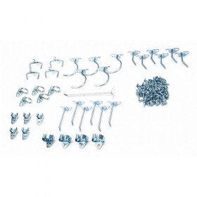 Sub-Category - Pegboard And Slatwall Accessories Hook Kit Pegboard Hook Assortment Kit Hole Shape Round Mounting Type Screw In Hole Size 1/4 in or 1/8 In. Material Steel Color Silver Load Capacity 12 lb. Rod Thickness 3/16 and 1/4 In. Construction Welded Finish Zinc Plated Steel Locking System Yes Includes Hooks Screws