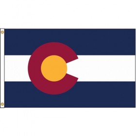 D3772 State Flag Colorado Indoor Outdoor Style Screen Printed Single/Reverse Image Header and Grommets Height 5 ft. Width 8 ft. Min Flagpole Height 30 ft. Material Nylon