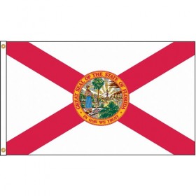 D3772 State Flag Florida Indoor Outdoor Style Digital Single/Reverse Image Header and Grommets Height 5 ft. Width 8 ft. Min Flagpole Height 30 ft. Material Nylon