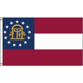 D3772 State Flag Georgia Indoor Outdoor Style Screen Printed Single/Reverse Image Header and Grommets Height 5 ft. Width 8 ft. Min Flagpole Height 30 ft. Material Nylon