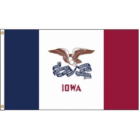 D3772 State Flag Iowa Indoor Outdoor Style Digital Single/Reverse Image Header and Grommets Height 5 ft. Width 8 ft. Min Flagpole Height 30 ft. Material Nylon