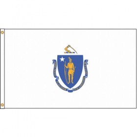 D3772 State Flag Massachusetts Indoor Outdoor Style Screen Printed Single/Reverse Image Header and Grommets Height 5 ft. Width 8 ft. Min Flagpole Height 30 ft. Material Nylon