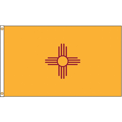 D3772 State Flag New Mexico Indoor Outdoor Style Digital Single/Reverse Image Header and Grommets Height 5 ft. Width 8 ft. Min Flagpole Height 30 ft. Material Nylon