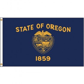 D3772 State Flag Oregon Indoor Outdoor Style Digital Single/Reverse Image Header and Grommets Height 5 ft. Width 8 ft. Min Flagpole Height 30 ft. Material Nylon