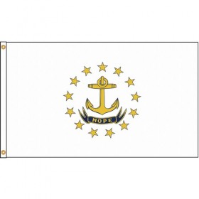 D3772 State Flag Rhode Island Indoor Outdoor Style Screen Printed Single/Reverse Image Header and Grommets Height 5 ft. Width 8 ft. Min Flagpole Height 30 ft. Material Nylon