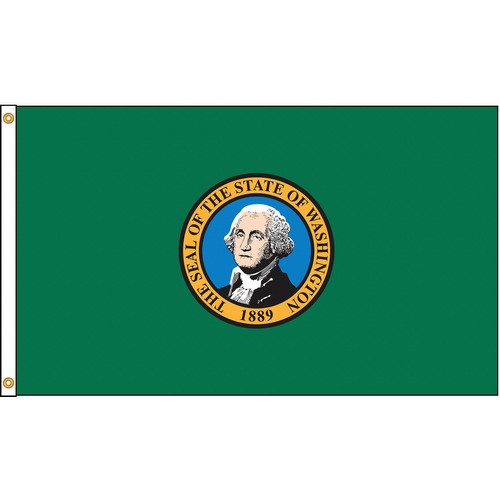 D3772 State Flag Washington Indoor Outdoor Style Screen Printed Single/Reverse Image Header and Grommets Height 5 ft. Width 8 ft. Min Flagpole Height 30 ft. Material Nylon