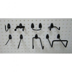 G0588 Sub-Category - Pegboard And Slatwall Accessories Hook Kit Pegboard Hook Assortment Kit Hole Shape Round Mounting Type Screw In Hole Size 1/4 In. Hole Spacing 1 In. Material Steel Color Black Construction Welded Includes 12 Rods and Clips