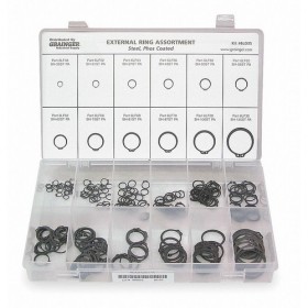 External Retaining Ring Assortment Sizes 1/4 to 1 1/4 Inch 240 Pieces 12 Sizes Steel Phosphate Includes 25 Each SH-25 x 1/4 SH-31 x 5/16 SH-37 x 3/8 SH-43 x 7/16 SH-50 x 1/2 SH-56 x 9/16 SH-62 x 5/8 and SH-75 x 3/4 10 Each SH-81 x 13/16 SH-87 x 7/8 SH-100 x 1 and SH-125 x 1 1/4 Meets/Exceeds QS-9000/ISO 9002 MS ANSI and Din Specifications