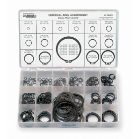 External Retaining Ring Assortment 273 Pieces 21 Sizes Steel Phosphate Includes (25) SH-25x1/4 SH-31x5/16 SH-37x3/8 SH-43x 7/16 SH-50 x 1/2 SH-56 x 9/16 SH-62 x 5/8 and SH-75 x 3/4 (10) SH-81 x 13/16 SH-87 x 7/8 SH-100 x 1 and SH-125 x 1 1/4 (5) SH-131 x 1 5/16 SH-137 x 1 3/8 SH-150 x 1 1/2 SH-162 x 1 5/8 and SH-175 x 1 3/4 (2) SH-200 x 2 SH-225 x 2 1/4 SH-250 x 2 1/2 and SH-262 x 2 5/8 Meets/Exceeds QS-9000/ISO 9002 MS ANSI and Din Specifications