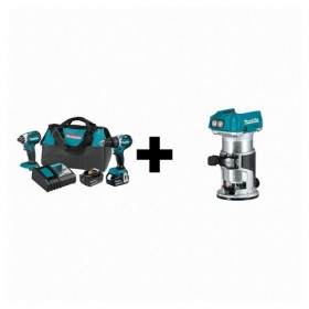 Cordless Combination Kit Cordless Tools Included Hammer Drill Impact Driver Router Voltage 18V DC Power Source Cordless Number of Tools 3 Battery Capacity (2) 4.0 Ah Includes (2) Batteries Charger Contractor Bag Tool Brand Makita Series LXT Battery Included (2) 33RT43 Mfr No BL1840B Number of Batteries Included 2 Battery Model No (2) Mfr No BL1840B Battery Series 18V LXT Charger (1) Mfr No DC18RC Charger Included Yes
