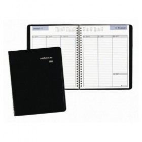Planner Format One Week per Two-Page Spread Sheet Size 6-7/8 x 8-3/4 in Paper Color White Cover Color Black Cover Material Simulated Leather Features Julian Dates Ruled Blocks Telephone/Address Pages