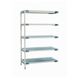 Assembled Unassembled Adjustability Adjustable Color Blue/Taupe Frame Material 304 Stainless Steel Overall Depth 72 in Overall Height 74 in Overall Width 18 in Shelf Adjustment Increments 1 in Shelf Style Ventilated Shelving Material 304 Stainless Steel Polymer Industrial Shelving Strength Rating Whole Unit Load Capacity 2 000 lb Number of Shelves 5 Mounting Type Wedge Post Clamp Mounting Hardware Required Yes Load Capacity per Shelf 400 lb Includes Mounting Hardware No